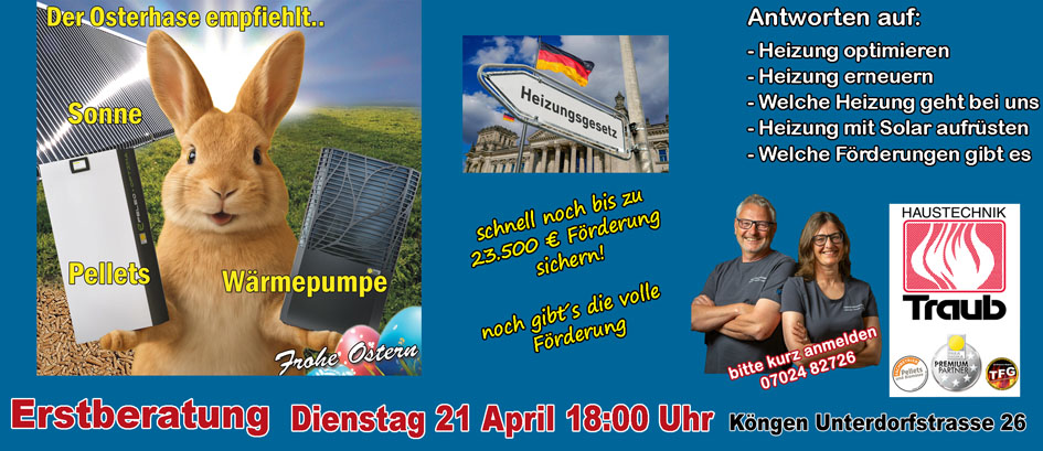 Terminflyer PDF – Bitte immer anmelden 07024 82726 Welche Heizung ist die Richtige für mich und unser Haus? Welche Auflagen habe ich? Welche Förderungen gibt es und wie bekomme ich Sie? Auf was lasse ich mich ein wenn ich eine „politisch gewollte“ Heizung einbaue, die nicht zu meinem Haus passt? – Wir haben Antworten –…